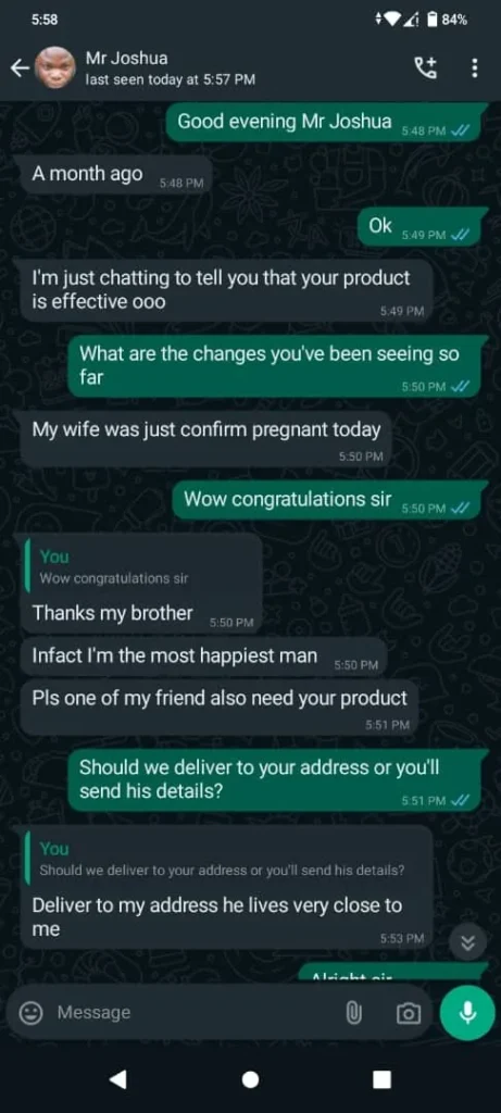 There are only 120 packs left at this discounted price. Once they finish, the price returns to Normal. If you truly want to get your woman pregnant and end the delay, now is your moment.